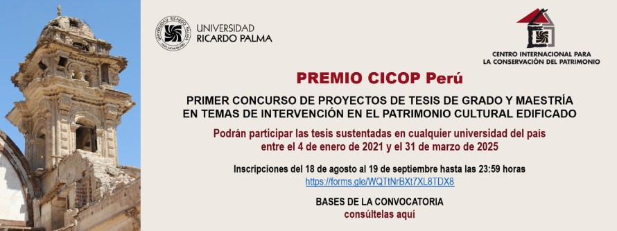 La propuesta de realizar el Primer Concurso de proyectos de tesis de grado y maestría en temas de intervención en el patrimonio cultural edificado convocado por el CICOP Perú, tiene como objetivo principal incentivar el interés por el patrimonio construido, en cualquiera de sus manifestaciones, las mismas que pueden ser: patrimonio prehispánico, patrimonio virreinal, patrimonio republicano, patrimonio contemporáneo, patrimonio industrial, patrimonio monumental y espacio público, centros históricos, paisajes culturales, arquitectura vernácula, patrimonio tecnológico constructivo, patrimonio territorial y ambientes urbano monumentales.